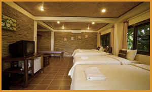 You can reach the sky view in our Baan ChomDaow surrounding by varieties of natural tree setting. A front porch allows you to relax and enjoy the gentle breezes during the day and at night be star watchers. You can fuel warmness freshess and relieve from the green front lawn. We provide 4 single beds and allowing 1 extra bed.